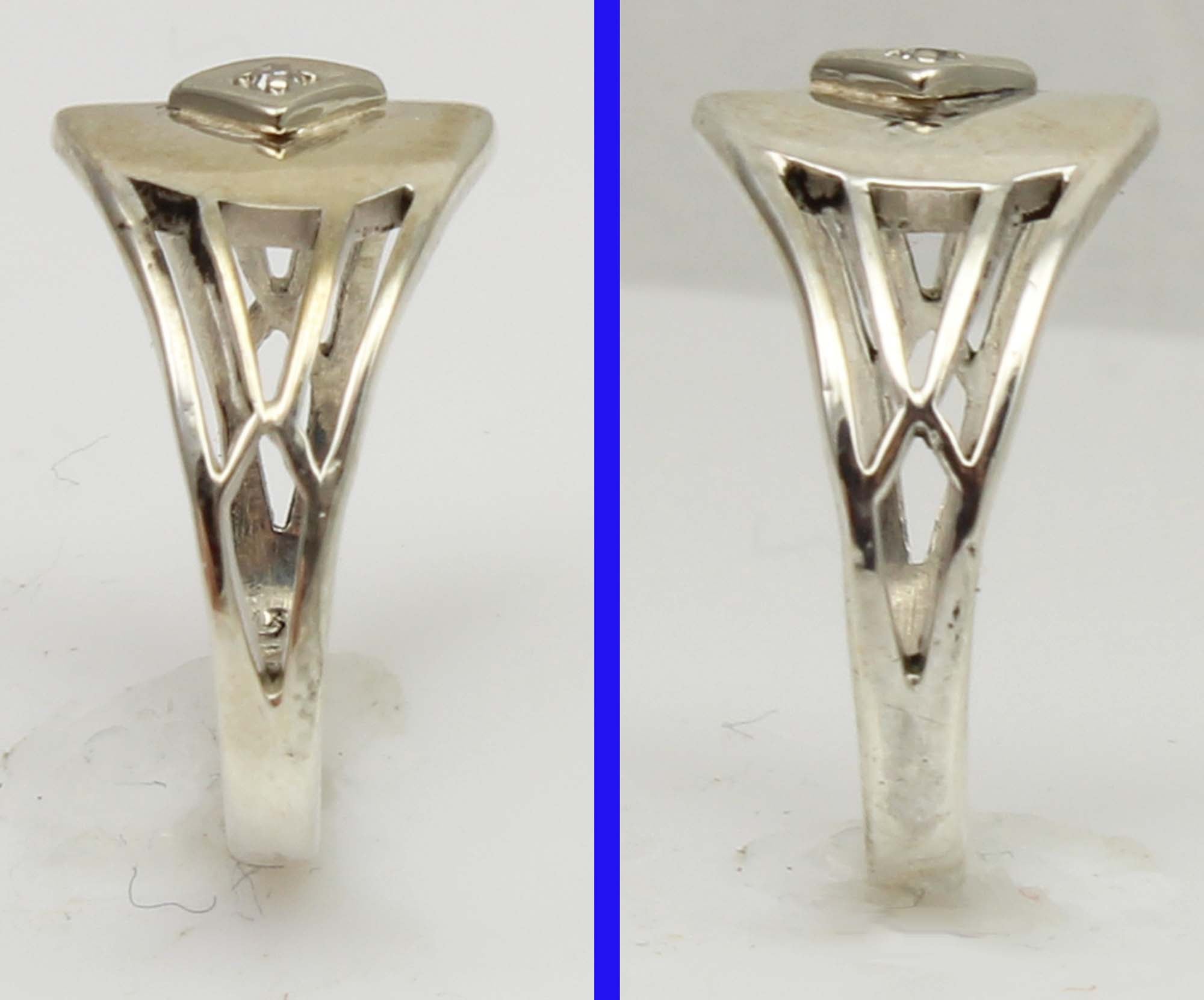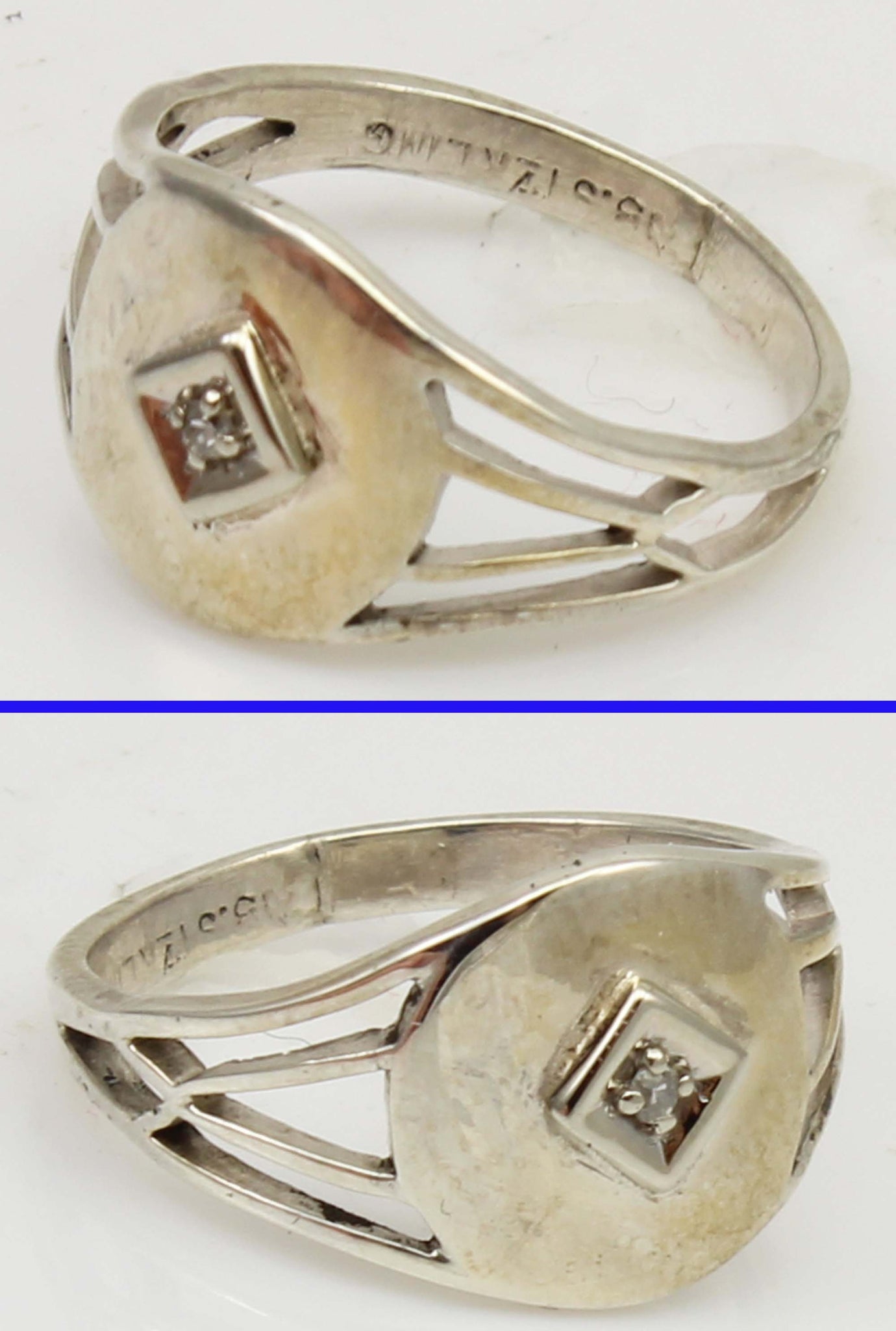 Silver & Gold: This ring is fully hallmarked "Sterling" and tests as and is guaranteed to be Solid Sterling Silver with a a 10k Solid White Gold Diamond Mount. (Again this ring is guaranteed to be Solid Sterling Silver and Solid Gold not plated or layered)