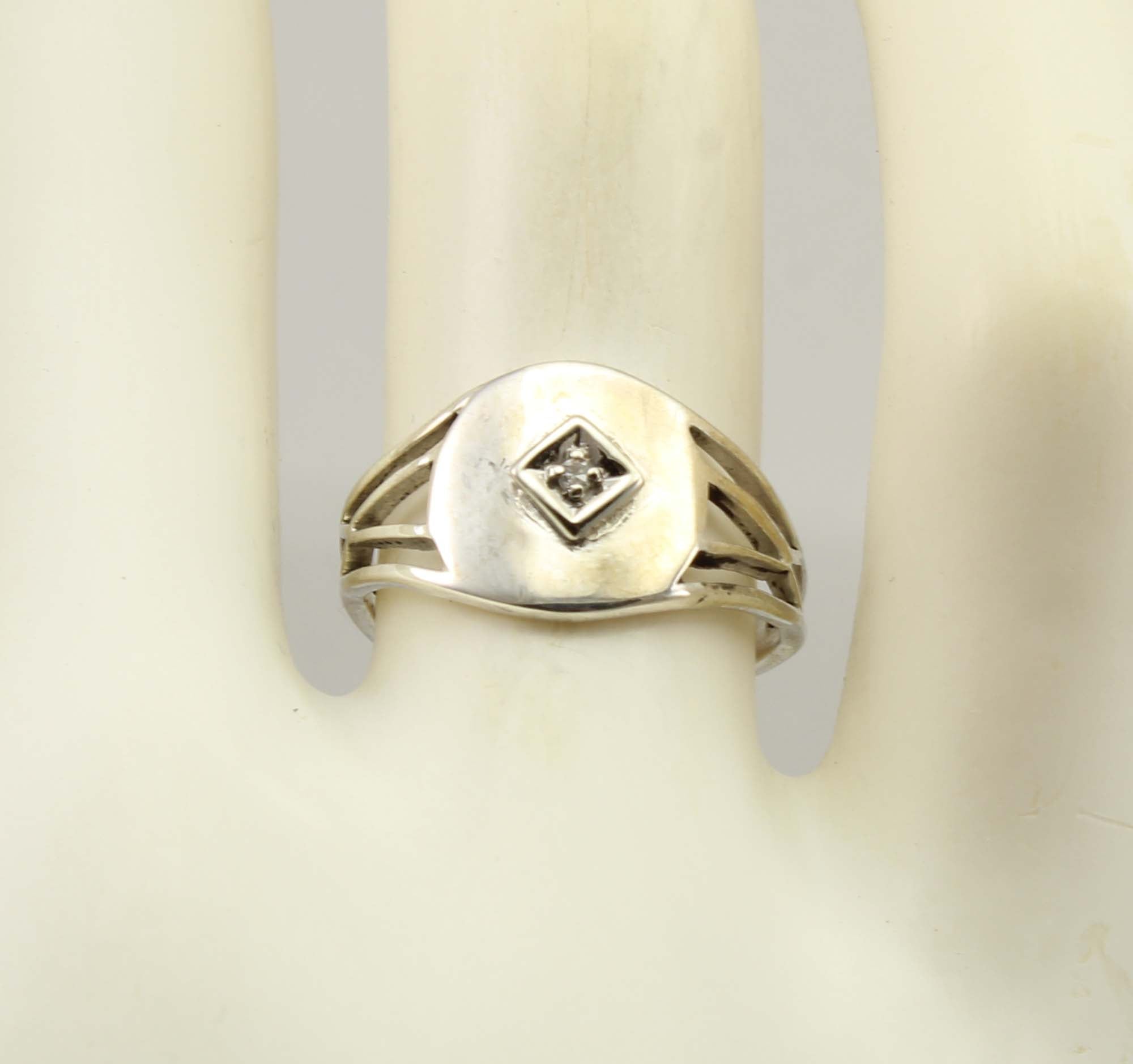 Up for sale is recent Estate Auction find, an Antique SIGNED Ostby & Barton 1920's Art Deco Antique Cut Natural & Genuine Diamond Solid Sterling Silver & 10k Solid White Gold Ladies Cocktail Ring. This Original Antique SIGNED Ostby & Barton 1920's Art Deco Solid Sterling Silver & 10k Solid White Gold Ring is bead set with a 1.2mm Natural & Genuine Antique Single Cut Diamond. This type of antique single cut diamond has a larger table and a round girdle and no culet facet. A single cut diamond has 16 to 18 facets. This type of single cut is an early diamond cut dating to the 19th and early 20th century. The reason for the diamond to be cut in this manner is so that the light is brought in at such an angle that the vision which those gazing upon the diamond perceive is one of brilliance and fire. This diamond has nice color and clarity and is guaranteed to be both Genuine & Natural. This Diamond is in PERFECT PRISTINE CONDITION free of any chips, nicks, cracks, or scratches. This ring has been set with a 10k Solid White Gold Diamond mount in which the diamond has been set. The interior of the ring is also fully hallmarked with the maker's mark "OB" which is the hallmark for Ostby & Barton an extremely collectible and sought after vintage brand. Ostby & Barton, Providence R.I. The business was established in 1879 by Englehart C. Ostby and Nathan B. Barton. Ostby perished in the Titanic disaster while his daughter Helen made it to a lifeboat and survived. The company went on to become one of the most famous jewelry companies in the world. Ostby & Barton Jewelry is now an extremely collectible and highly sought after vintage brand. The dark areas on surface of the silver in the photos are not blemishes but shadows and reflections due to the difficulty in photographing the highly polished silver. The darker oil slick look in the details and recessed areas is the natural patina of the ring that only comes with age. If you would like us to polish the ring further to remove this patina just let us know, it is no problem at all. This ring is in EXCEPTIONAL CONDITION and will arrive ready to wear.