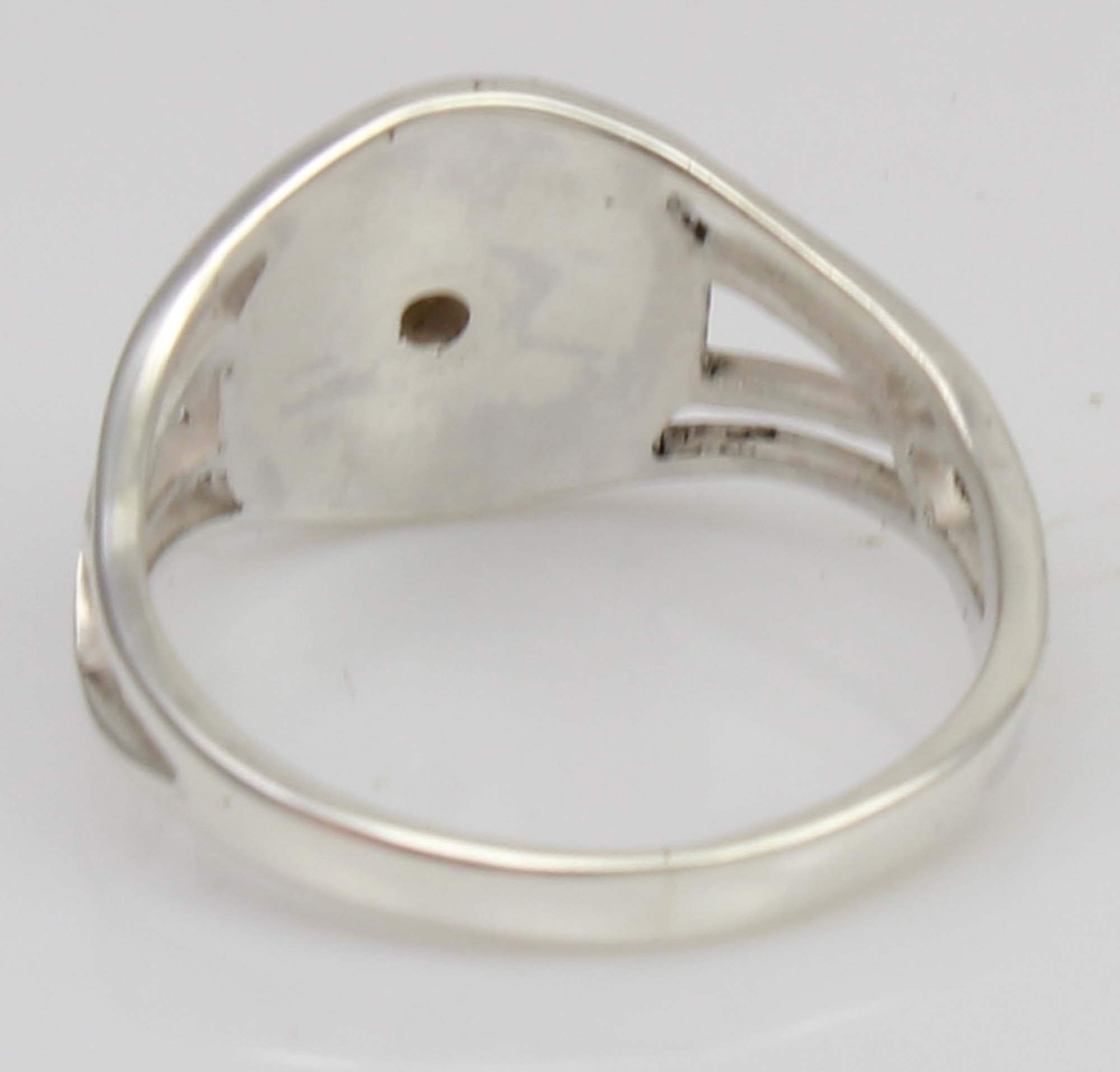 Ring Size & Measurements: This ring is a size 5 1/2 and can be sized up or down by a competent jeweler. Ring dimensions are 19mm tall and 18mm wide. Ring rises 2mm from the finger. (1 inch = 25mm) 2.3 Grams Total Weight